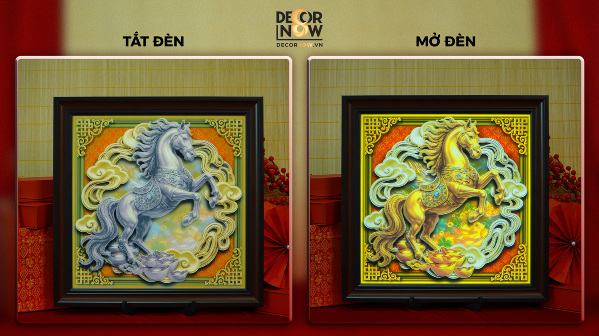 Toàn bộ tranh của DecorNow được chế tác tại Việt Nam, từ bản vẽ do nhóm họa sĩ nội bộ nghiên cứu biểu tượng văn hóa Việt cho đến công đoạn in ấn. Mỗi tác phẩm ứng dụng mực UV Nhật Bản trên mica tráng gương giúp bền màu 10 - 20 năm, kết hợp hiệu ứng ánh sáng nổi độc quyền và khung PE Composite bền nhiệt, cong vênh thấp, phù hợp đặc tính không gian thờ cúng thường xuyên có đèn và khói nhang.