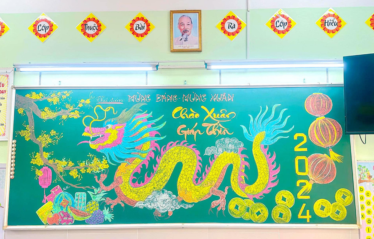 “Rồng được coi là biểu tượng của tăng trưởng, may mắn nên chúng tôi muốn vẽ để cầu mong một năm mới mọi sự hanh thông đến với các em và gia đình. Bức tranh được các em học sinh rất thích, rất hào hứng. Chỉ cần cô đùa rằng xoá bảng là cả lớp đều năn nỉ xin để lại”, nữ giáo viên vui vẻ nói.