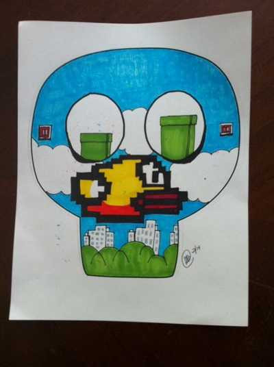 Bức Flappy Bird vẽ cảnh Game Over báo giá hơn 360 USD.