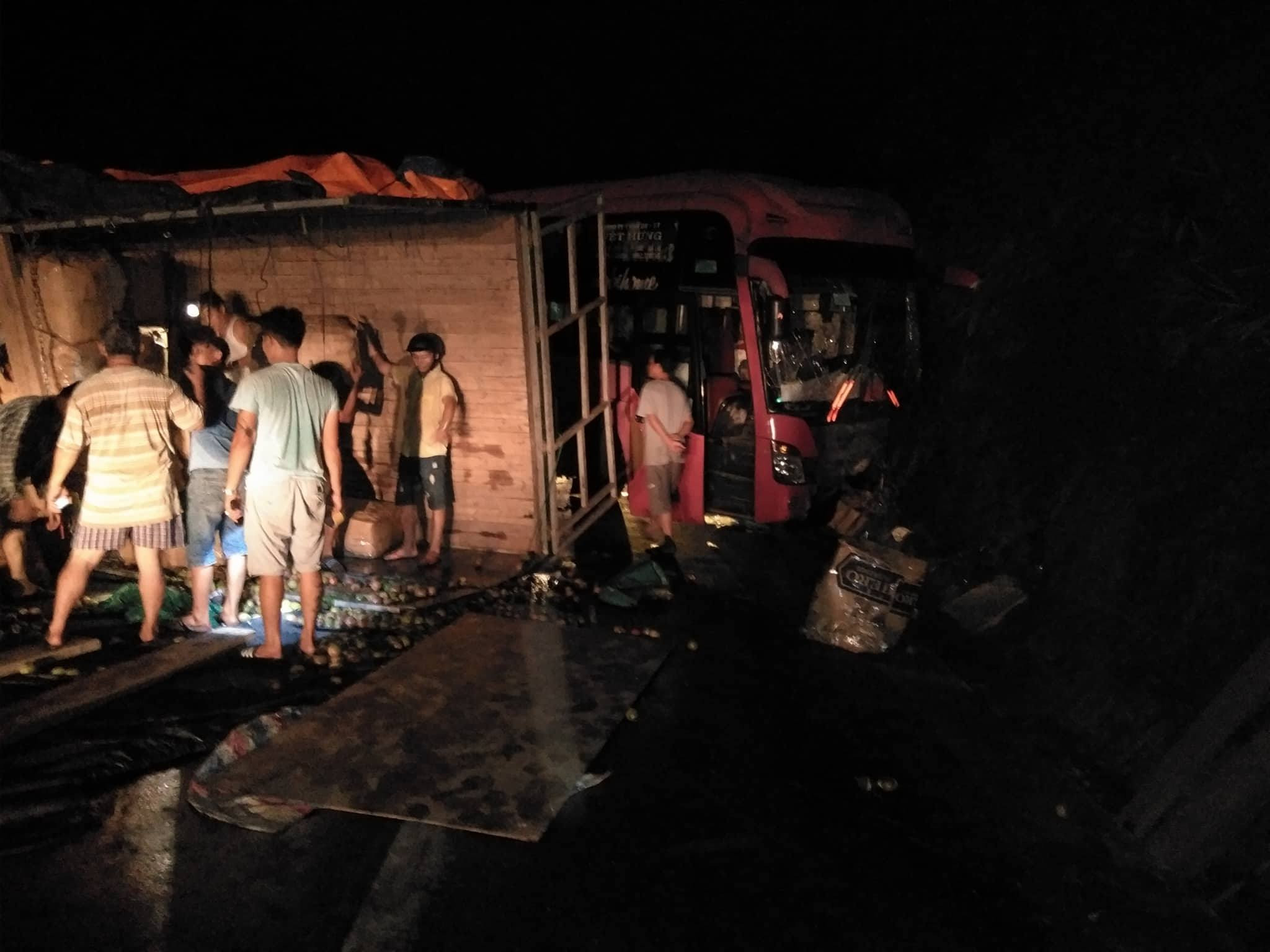 Ghi nhận của PV VTC News tại hiện trường cho thấy, chiếc xe khách đâm vào vách núi khiến đầu xe biến dạng, toàn bộ phần cửa kính trên xe vỡ vụn, chiếc xe tải bị lật nằm vắt ngang đường hư hỏng nặng. Hàng chục người trên xe khách phải ngồi bên đường chờ chuyến xe khác để tiếp tục hành trình.