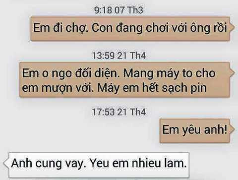 Nhiều ngày nay, trên mạng xã hội đang lan truyền một trào lưu khá thú vị của các bà vợ. Trò chơi rất đơn giản, các bà vợ lấy điện thoại ra và nhắn cho chồng: “Em yêu anh”, sau đó chụp lại tin nhắn trả lời của chồng và chia sẻ với mọi người cùng xem.
