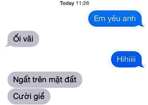 Bạn Trang Mèo cho biết ‘sức nóng” của trò chơi này lan vào cả hội trong Nam: “Hôm qua em thấy hội ngoài Bắc chơi trò này xả strees hay lắm. Hội mình các chị em mình có muốn thử không ạ? Mọi người lấy điện thoại nhắn tin cho chồng là “Em yêu anh” xem các anh xã trả lời sao rùi chụp lại post lên xem kết quả nhé. Đảm bảo các mẹ sẽ được trận cười nhặt răng không kịp. Cùng thử các chị nha”.