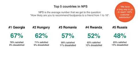 Mức độ hài lòng của khách hàng với foodpanda tại 5 quốc gia.