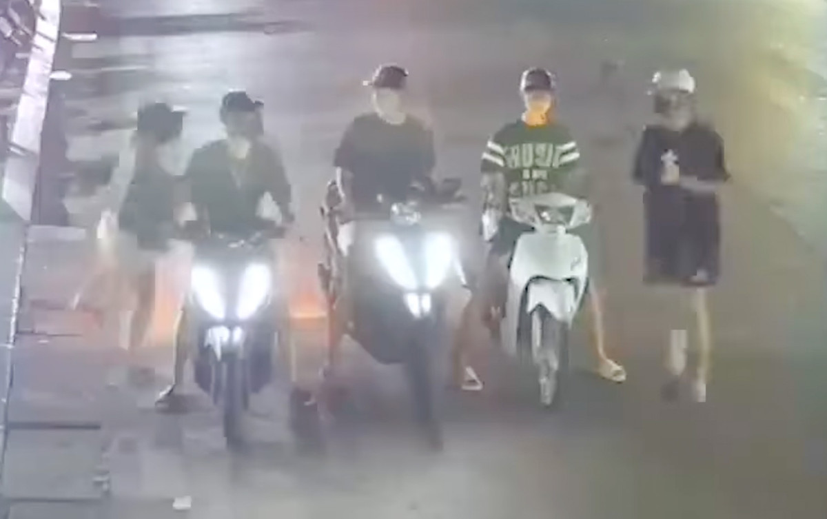 Nhóm thanh thiếu niên dàn hàng chụp ảnh thông qua camera giám sát. (Ảnh: Chụp màn hình)