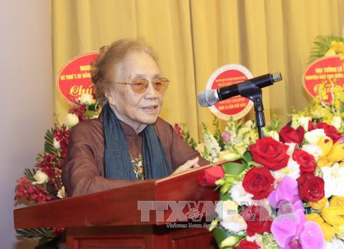 Nguyên Phó Chủ tịch nước Nguyễn Thị Bình phát biểu tại buổi lễ. (Ảnh: Nhan Sáng/TTXVN)
