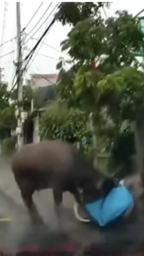 Trâu chạy loạn trên phố, húc một học sinh đang tới trường