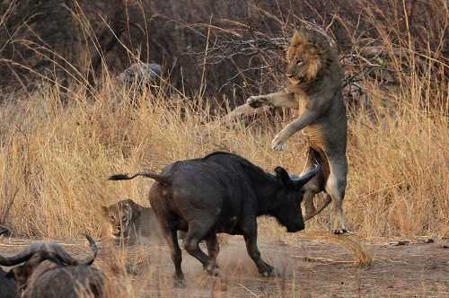 Trâu rừng ác chiến với sư tử