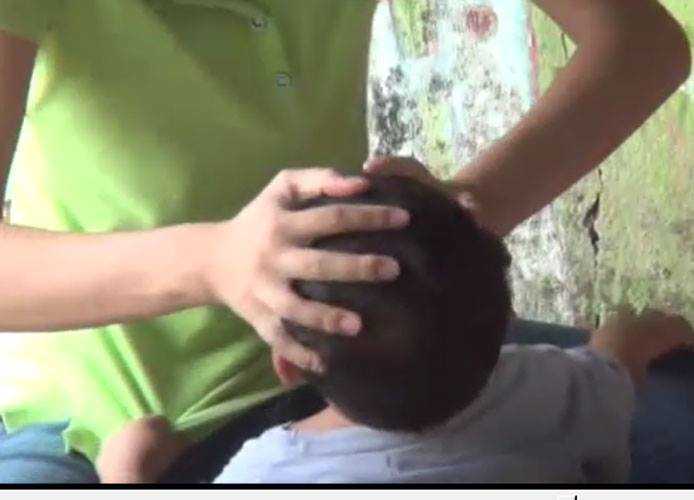 Bé Nguyễn Trần Hòa bị bảo mẫu đánh liên tiếp hàng chục cái vào mặt