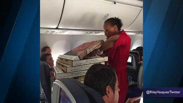 (VTC News) - Vì lý do thời tiết, chuyến bay bị trễ, phi công của chuyến bay đã mua pizza đãi toàn bộ hành khách vì sự chậm trễ ngoài mong muốn này.
