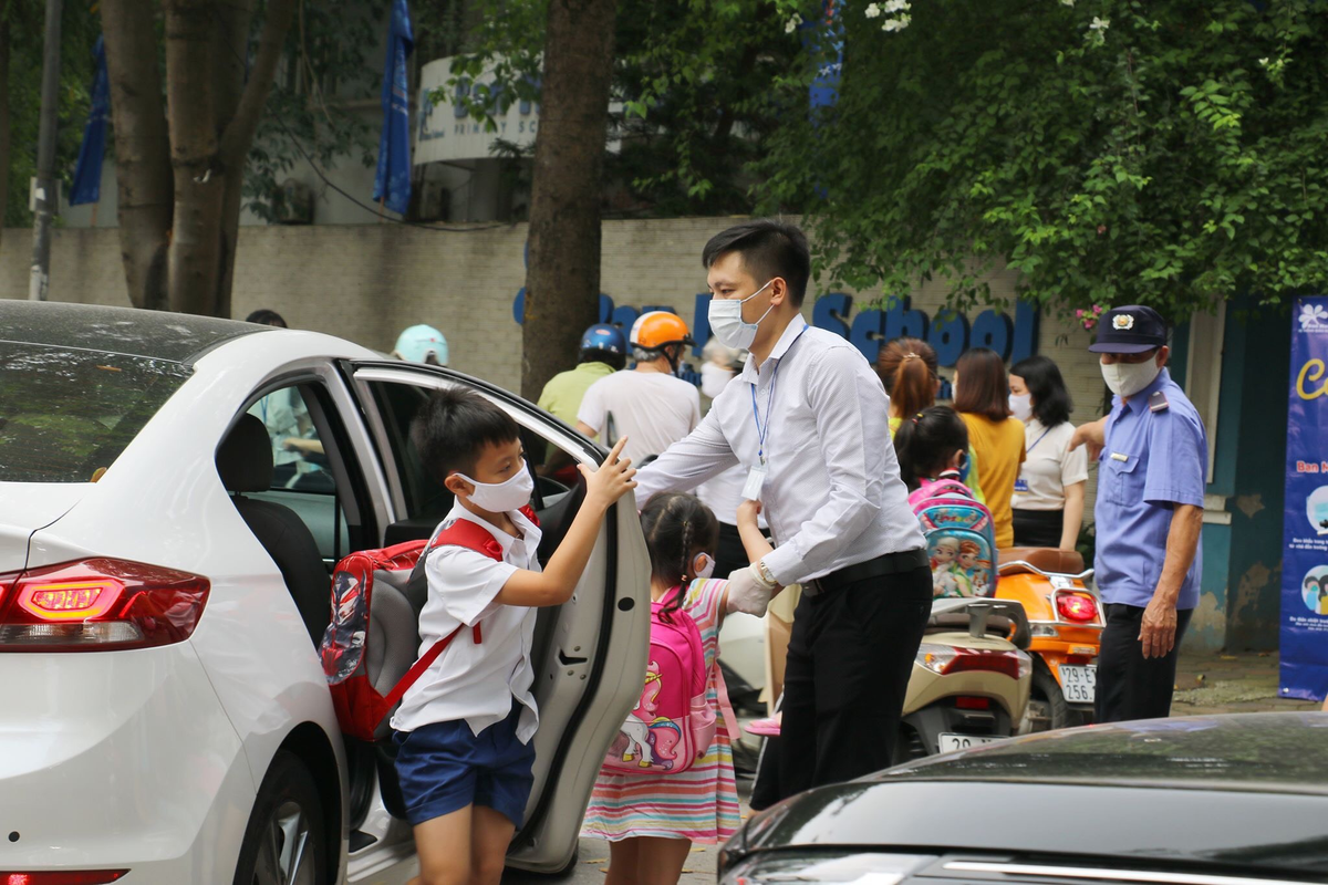 Phụ huynh Hà Nội đưa con trở lại trường sáng 11/5 sau kỳ nghỉ dài 3 tháng.