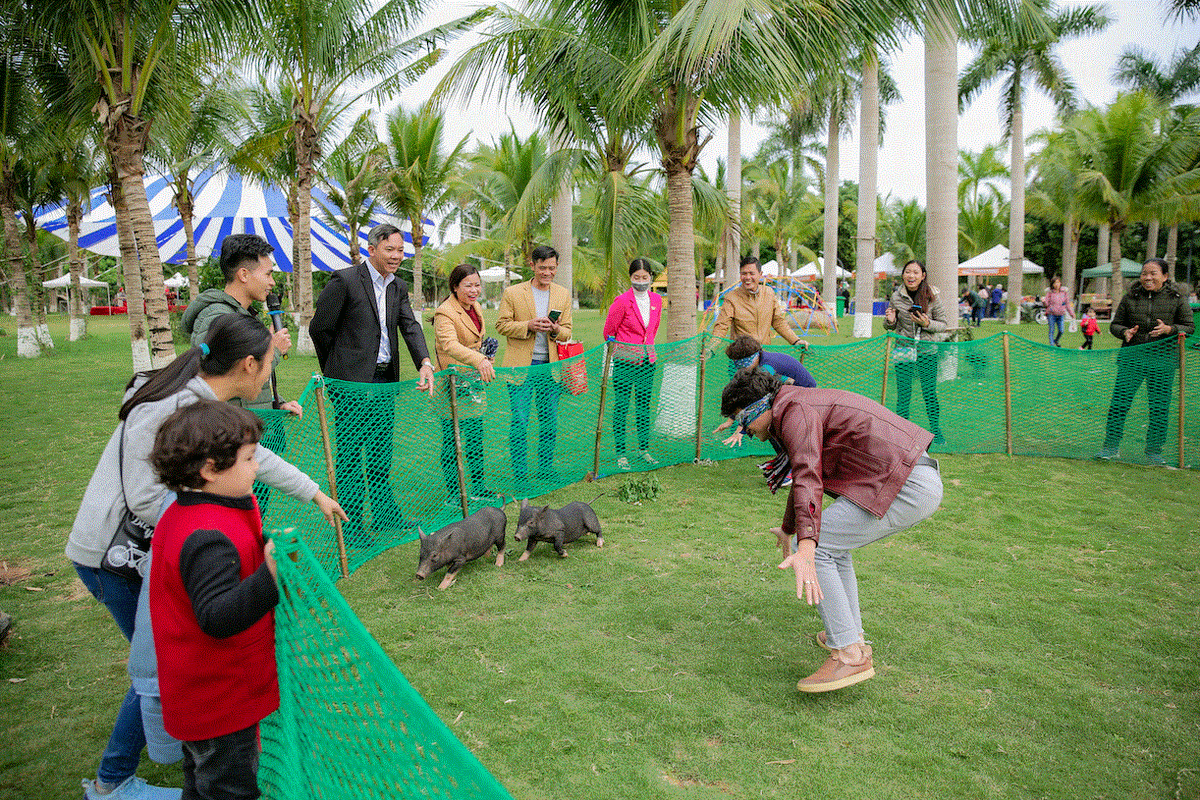 Các gia đình có trẻ nhỏ còn có cơ hội trải nghiệm khu vui chơi với đa dạng các trò chơi dân gian như: Ném còn, đánh đu, đi cầu kiều, hay các trò chơi vận động như nhà gỗ, nhảy đệm...