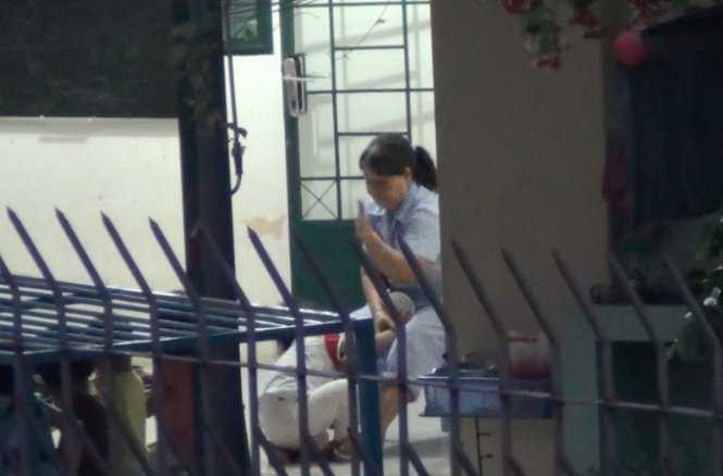| Bảo mẫu bạo hành trẻ nhiễm HIV trong bữa ăn - Ảnh trích từ clip của Ngọc Khải - Hải Hiếu |