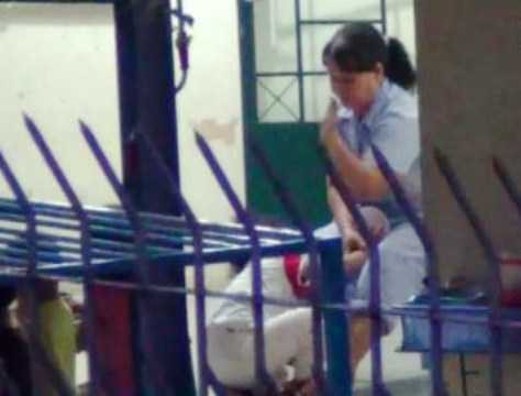 | Hình ảnh từ clip ghi lại cảnh một bảo mẫu đánh đạp trẻ nhiễm HIV dã man trên báo Tuổi Trẻ |