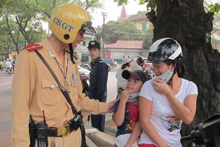 | CSGT nhắc nhở đội mũ bảo hiểm cho trẻ. Hình minh họa |