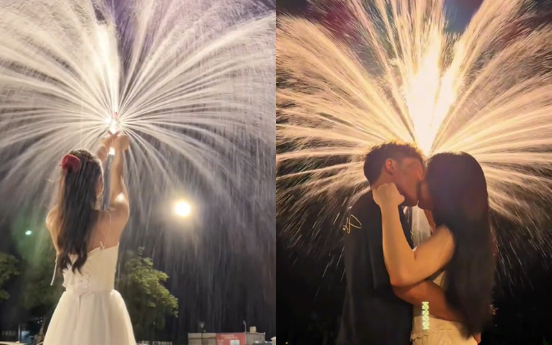 Trần Mai Nga My (20 tuổi, TP.HCM) cho biết: "Mình thấy trào lưu bóp chai nước này rất ấn tượng, như tạo hình pháo hoa. Không nhờ được người hỗ trợ, mình đã tự mua kim về đục lỗ chai nước, sau đó dựng chân máy quay video vào buổi tối".