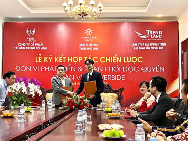 Lễ ký kết hợp tác chiến lược dự án Vinh Riverside diễn ra tốt đẹp với sự tham gia của đại diện CĐT Sài Gòn Trung Đô Vinh và Liên minh hai đơn vị Trend Land & Trung Thực Land.