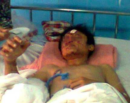 Người nhà cho biết, trong khi chơi ở nhà, do người lớn không để ý trông coi nên cháu đã dùng que sắt đập vào dây điện gây chập nổ và cháu cũng bị bỏng nặng.