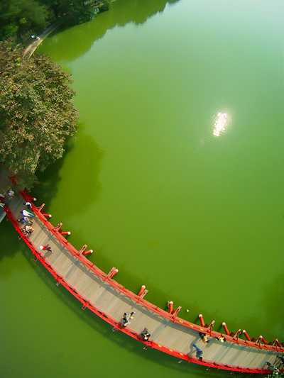 Cuối năm 2009, cộng đồng mạng được dịp xôn xao bàn tán xung quanh chùm ảnh chưa từng có về Hồ Gươm và cầu Thê Húc, với góc chụp thẳng đứng từ trên xuống. Ở hướng nhìn này, tác giả không thể tác nghiệp từ một tòa nhà cao tầng nào đó ở gần Hồ Gươm như những bức hình từng xuất hiện trước đây. Có ý kiến cho rằng, người chụp đã ngồi trên máy bay trực thăng hoặc treo mình trên tàu lượn hay khí cầu mới có bức hình lạ đến vậy.