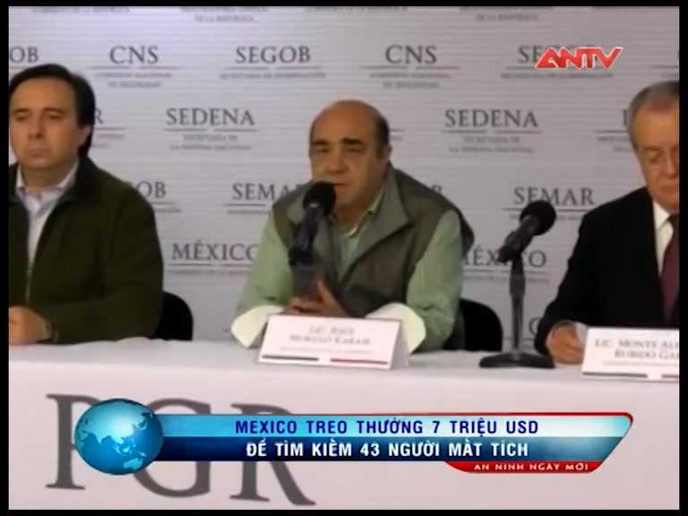 (VTC News)-Văn phòng Tổng công tố liên bang Mexico ngày 20/10 đã tuyên bố treo thưởng 7triệu USD cho thông tin liên quan tới vụ 43 giáo viên,sinh viên mất tích
