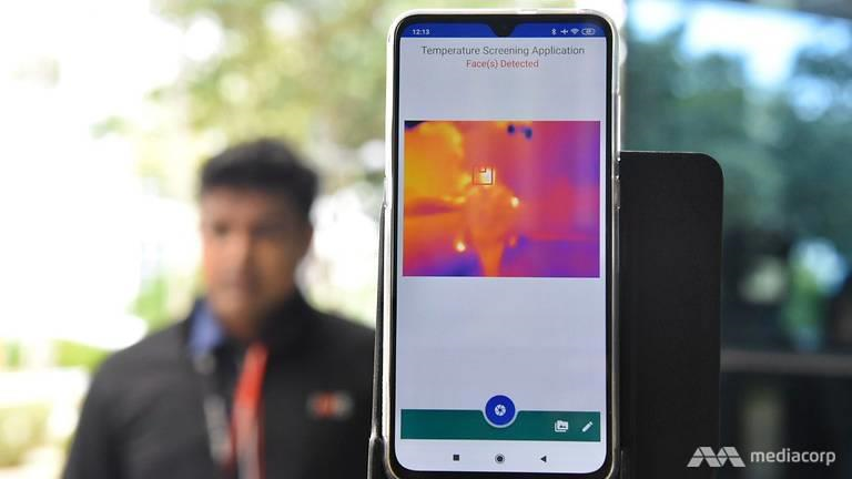 Điện thoại di động có camera nhiệt và ứng dụng AI để phát hiện những người có thể bị sốt khi họ đi ngang qua. (Ảnh: CNA)