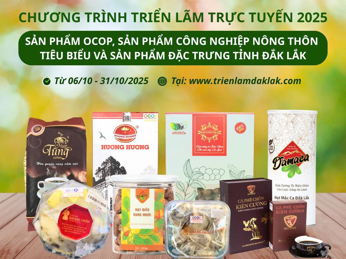 Triển lãm trực tuyến sản phẩm OCOP, sản phẩm công nghiệp nông thôn tiêu biểu và đặc trưng tỉnh Đắk Lắk năm 2025 là hoạt động quảng bá, kết nối tiêu thụ sản phẩm địa phương đến người tiêu dùng trong và ngoài nước. Chương trình mang tính sáng tạo, hỗ trợ doanh nghiệp, hợp tác xã và hộ kinh doanh mở rộng thị trường, nâng cao năng lực cạnh tranh, khẳng định thương hiệu Đắk Lắk trong thời kỳ hội nhập.