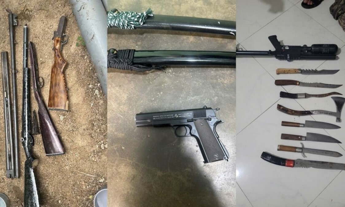 Kết quả khám xét cho thấy sự manh động của nhóm đối tượng khi Công an thu giữ được 4 khẩu súng nghi là vũ khí quân dụng, 2 viên đạn cùng nhiều hung khí như kiếm Nhật, dao, rìu. Để tránh bị phát hiện, Huy đã cất giấu toàn bộ số vũ khí này bên trong các ống nhựa và chôn sâu dưới đất phía sau vườn nhà.