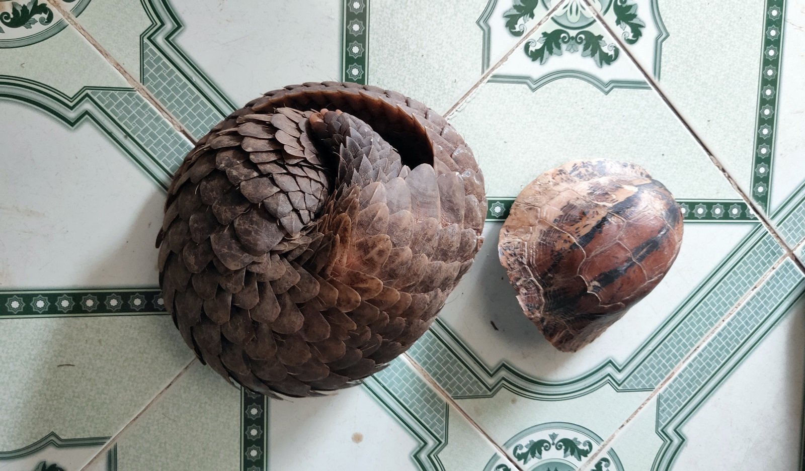 Tê tê và rùa hộp trán vàng miền Trung bị tàng trữ trái phép. (Ảnh: B.Đ)