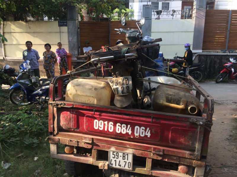 Cũng tại bãi đất trống này, nhiều xe gắn máy chở các can nhựa để thu gom xăng, dầu vừa trộm cắp được mang đi nơi khác tiêu thụ.