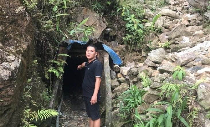 Nguyễn Quế Đông và đường hầm khai thác vàng trái phép. (Ảnh: C.A)