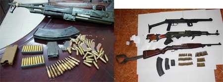 Một số khẩu súng và đạn thu giữ của các đối tượng.