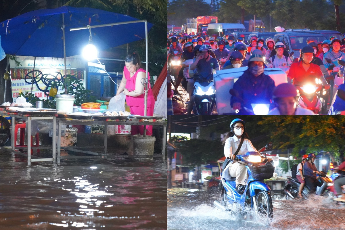 Chiều 17/10, TP.HCM xảy ra mưa lớn cục bộ trên diện rộng kết hợp triều cường dâng cao làm nhiều tuyến đường ở Quận 7, huyện Bình Chánh và Nhà Bè bị ngập nặng, giao thông ùn tắc.