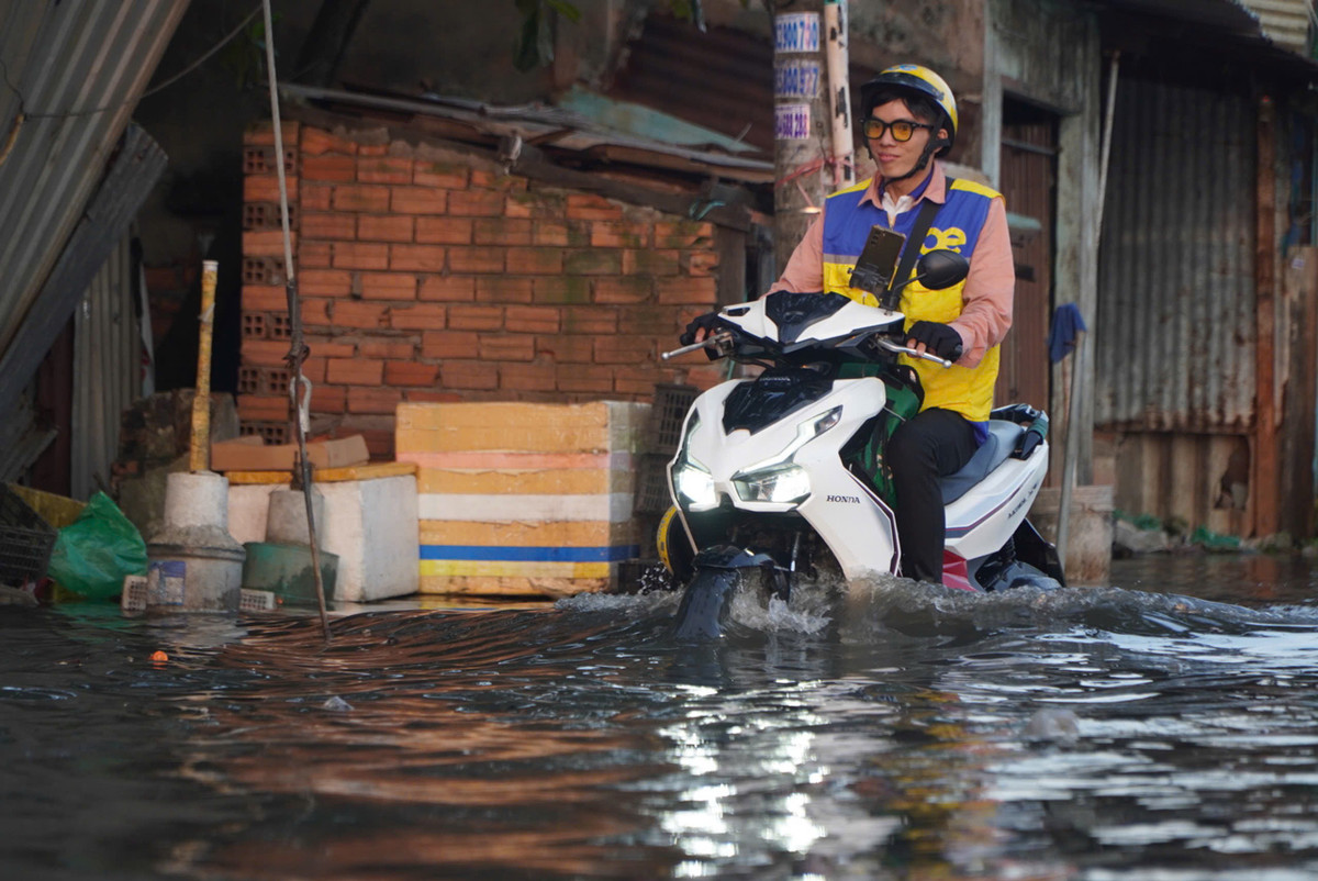 Khoảng 16h20, tại đoạn đường Phú Định (phường 16, quận 7, TP.HCM), triều cường dâng cao, nước tràn vào một số nhà dân gây tình trạng ngập úng.
