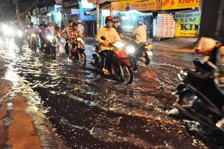 Trước đó, thực tế đỉnh triều ngày 8/11 cao 1,59 mét (vượt mức báo động 3 là 8cm) đã gây ngập tại nhiều tuyến đường ở TP.HCM như Kinh Dương Vương (Q.6), Trần Xuân Soạn (Q.7), Nguyễn Tất Thành, Lâm Văn Bền (Q.4), đường số 41, và các tuyến đường khác thuộc các Q.8, Q.2, Q.9, Q.Thủ Đức, có đoạn ngập tới nửa bánh xe máy.
