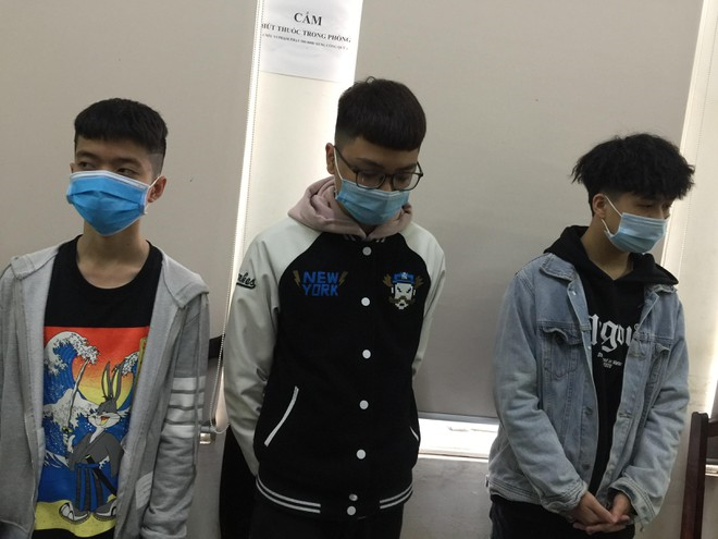 Ba nam thanh niên bị triệu tập tại cơ quan công an.