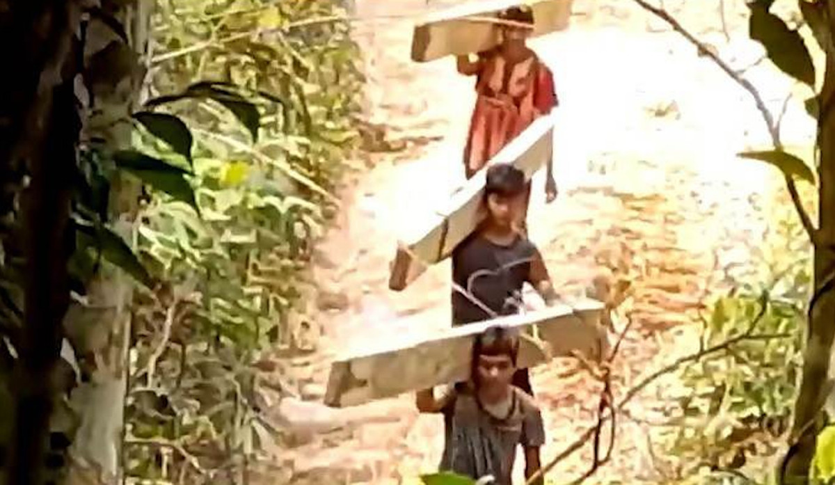 Lâm tặc vận chuyển gỗ ra khỏi khu vực rừng ở huyện Nam Đông. (Ảnh: Công Tuấn).