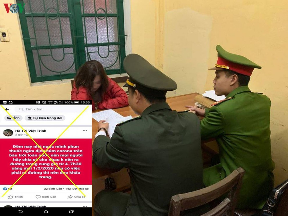 Ngày 1/2, Công an thành phố Thanh Hóa (Thanh Hóa) vừa lập biên bản vi phạm và xử lý Hà Thị Việt Trinh, sinh năm 1995 vì thông tin sai sự thật về dịch bệnh Corona trên facebook cá nhân.