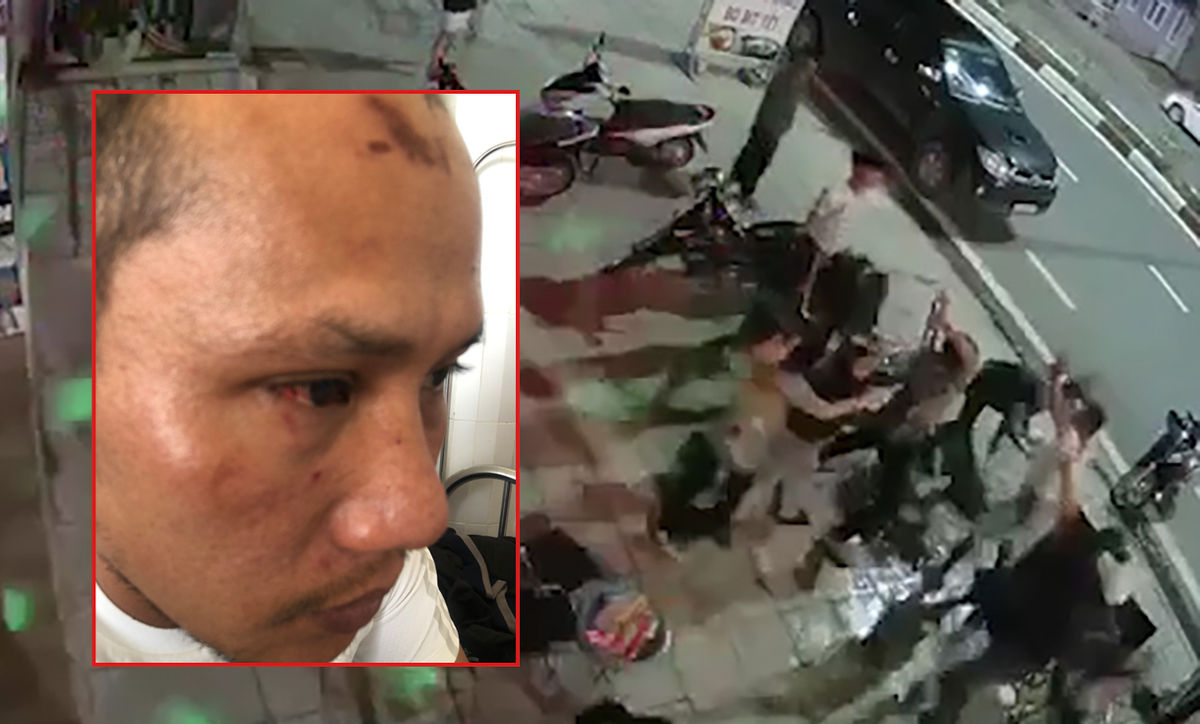 Chưa dừng lại, nhóm thanh niên hung hãn trên còn cầm ghế, chai bia, chén đĩa đập vào người anh Nghị gây thương tích, gãy răng hàm và ngã gục, được mọi người đưa đến bệnh viện cấp cứu.