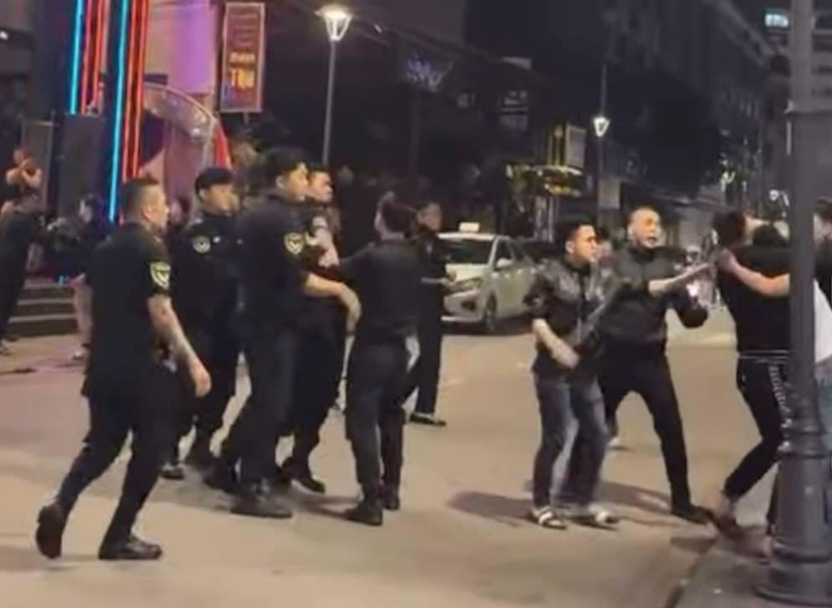 Trước đó, trên mạng xã hội Facebook xuất hiện đoạn video dài gần một phút ghi cảnh nhóm người mặc quần áo vệ sĩ lao vào đánh người khác xảy ra trước quán Pub Beer Quận 1.
