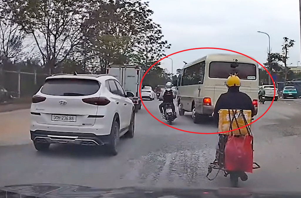 Trước đó, mạng xã hội chia sẻ đoạn clip ô tô 29 chỗ biển số 29B-305.34 chạy trên Đại lộ Thăng Long bất ngờ nhấn ga, tạt sang phải, không xi nhan, ép người đi xe máy vào ven đường.