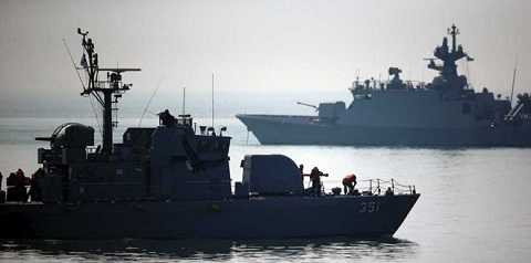 | Tàu chiến Hàn Quốc ở khu vực biên giới trên biển nước này |