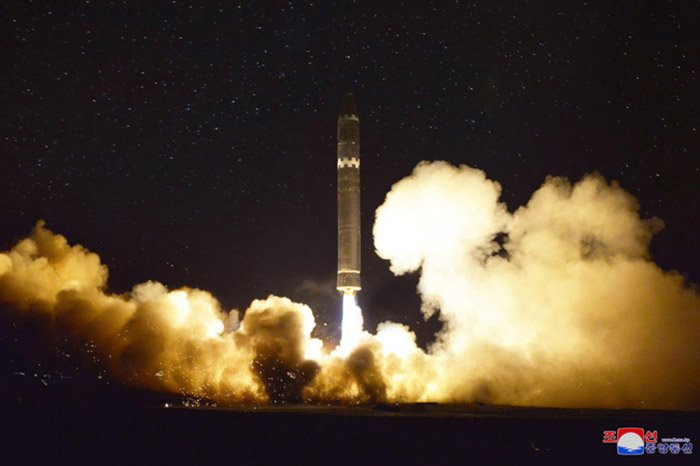 Triều Tiên thực hiện phóng thử tên lửa Hwasong-15 (Hỏa Tinh 15) vào rạng sáng 29/11 theo giờ Việt Nam, tên lửa này đạt độ cao 4.475 km và di chuyển được quãng đường 950 km trước khi rơi xuống vùng biển phía đông Nhật Bản.