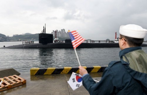 Tàu ngầm tên lửa dẫn đường Michigan hôm 25/4 tới cảng Busan, Hàn Quốc trước khi ra khơi 4 ngày sau đó. Tàu ngầm lớp Ohio được cho là đang thực hiện nhiều cuộc diễn tập.
