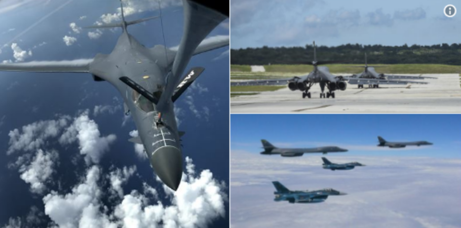 Tuyên bố này được đăng tải trang Twitter của Lực lượng không quân Mỹ tại Thái Bình Dương (PACAF). Đi kèm với đó là hình ảnh máy bay ném bom B-1B đang được tiếp nhiên liệu trên không, B-1B chuẩn bị cất cánh từ căn cứ không quân Anderson ở Guam cùng phi đội F-15 của Nhật và KF-16 của Hàn Quốc.