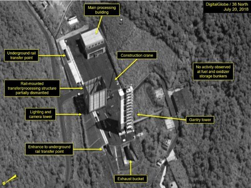 Theo 38 North – dự án tại Mỹ chuyên nghiên cứu về Triều Tiên, những hình ảnh ngày 20/7 cho thấy công việc tháo dỡ một tòa nhà tại Trạm phóng vệ tinh Sohae, vốn dùng để tập hợp các phương tiện phóng và một trạm thử nghiệm động cơ tên lửa gần đó - dùng để phát triển động cơ nhiên liệu lỏng cho tên lửa đạn đạo và các phương tiện phóng này.
