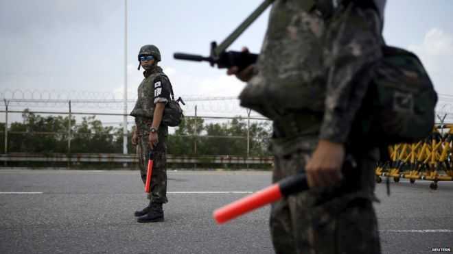 | Các binh sỹ Hàn Quốc canh gác ở biên giới |