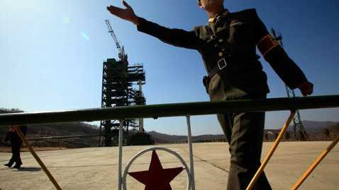 | Binh sĩ Triều Tiên làm nhiệm vụ bên cạnh khu vực thử tên lửa |