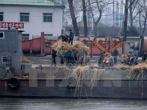 | Công nhân Triều Tiên làm việc tại bến sông Yalu |