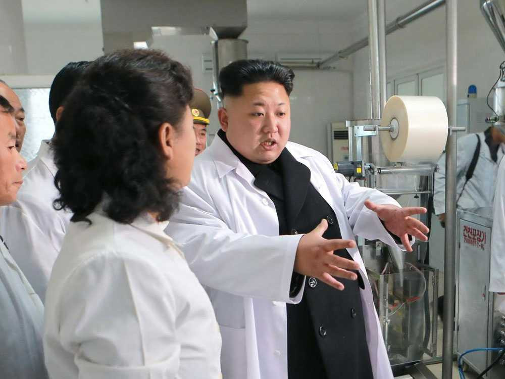 Lãnh đạo Triều Tiên Kim Jong Un làm việc với các nhà khoa học trong nước. (Ảnh: KCNA)
