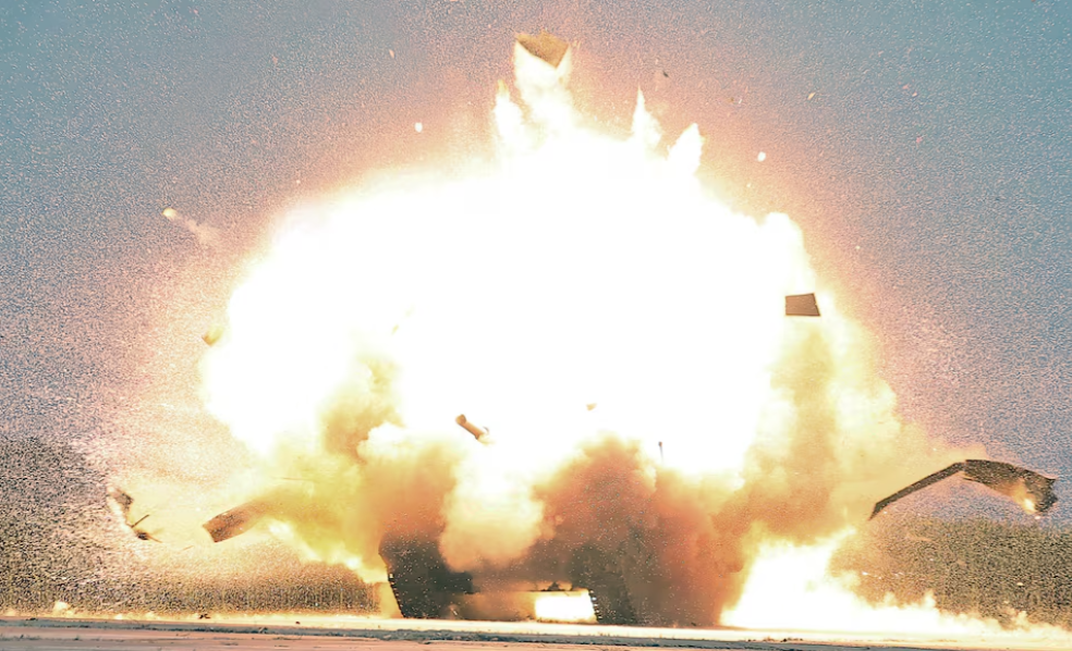 Một mục tiêu phát nổ trong cuộc thử nghiệm hiệu suất của UAV do nhà lãnh đạo Triều Tiên Kim Jong-un giám sát, ngày 24/8. (Ảnh: KCNA)