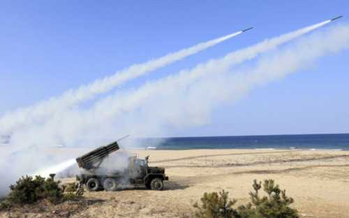 | Tên lửa Triều Tiên trong một buổi bắn kiểm tra |